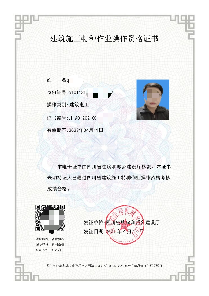 建設(shè)廳特種作業(yè)證書